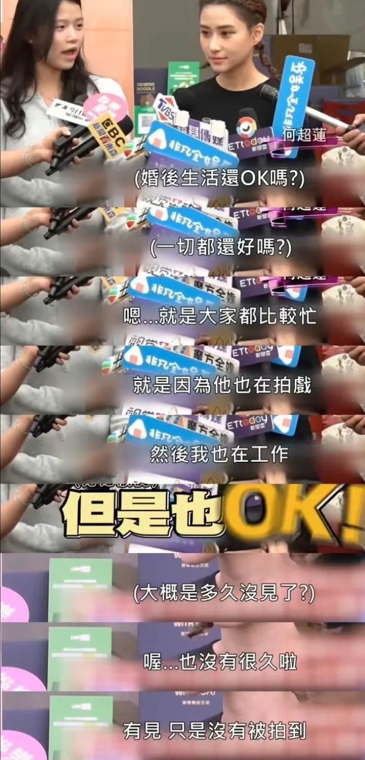 何超莲曾在采访中坦言,婚后两人各忙事业,见面机会稀少,虽然每日通话,但内容多围绕工作展开。