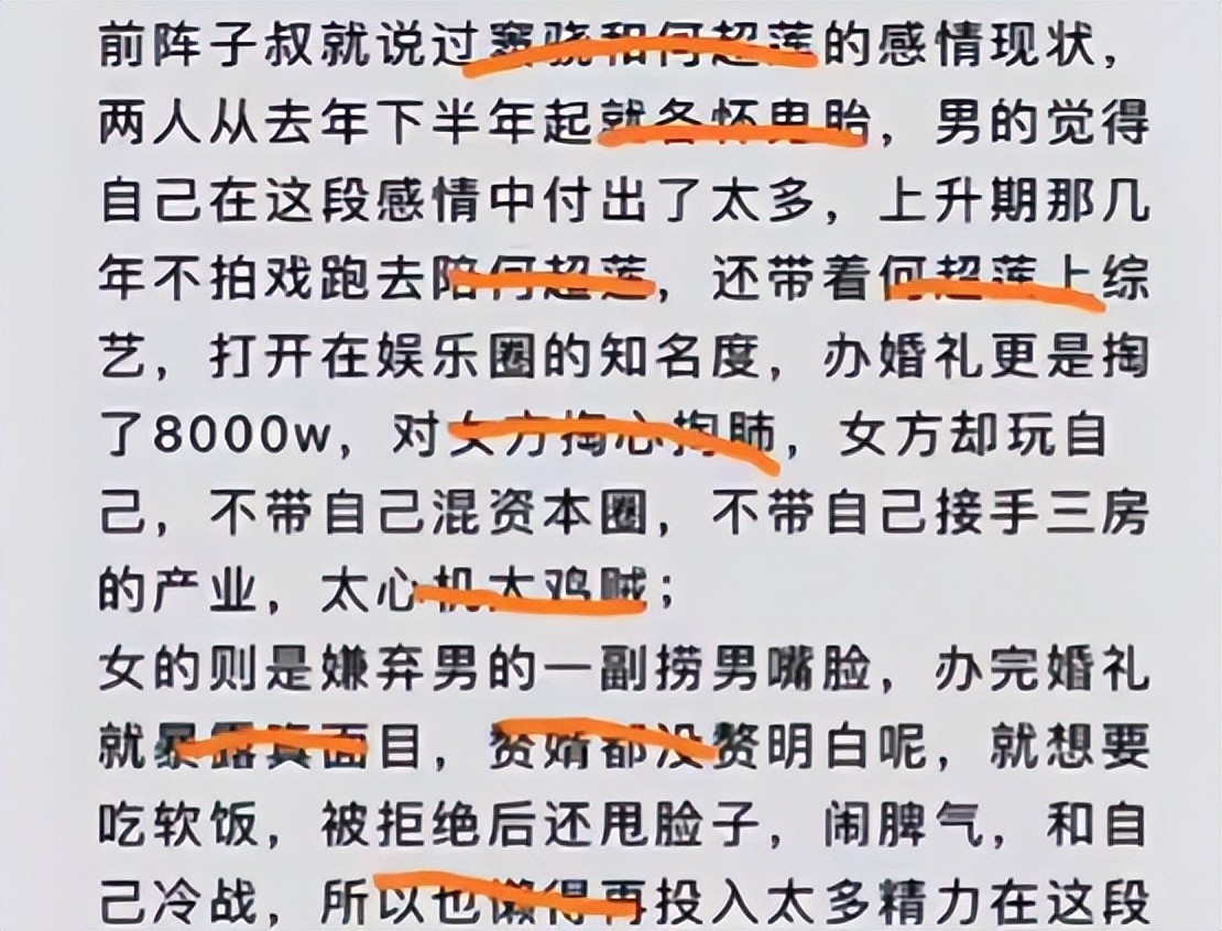 向太公开谈论某富家女与男星婚变内幕,直指女方家族严控财产、男方承担天价婚礼开销,而当事人疑似正是窦骁与何超莲!