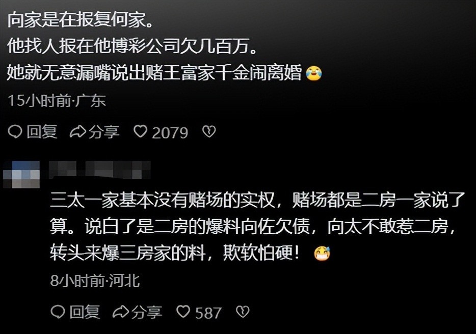 更有意思的是,当评论区出现“说的不就是窦骁何超莲吗?只差名字没报”这样的留言时,向太竟然亲自点赞,这一举动几乎等同于默认。